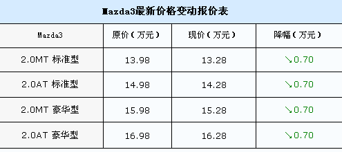 | 2.0 MT精英型 | 14.98 | 14.18 | ↘0.80 |