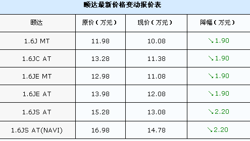 捷达车系 | 指导价(万元) | 现价(万元) | 降幅(万元) |
