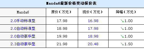 本周Mazda6的优惠有所变化,4S店全系列给出的优惠都缩小3000元,最高只有1.5万元的累计优惠,性价比有所降低,近期可能还会优惠还会增加,建议不急于购买的消费者可以多等一下。