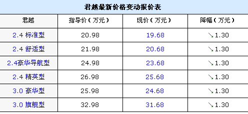 | 现指导价(万元) | 现价(万元) | 降幅(万元) |