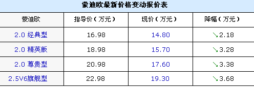2.0 MT尊贵型 | 17.98 | 15.73 | ↘2.23 |