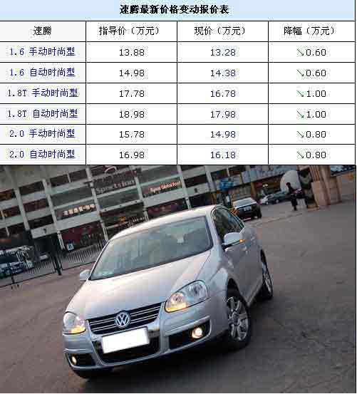 ● 速腾——价格基本保持稳定,4S店最高优惠1万元
