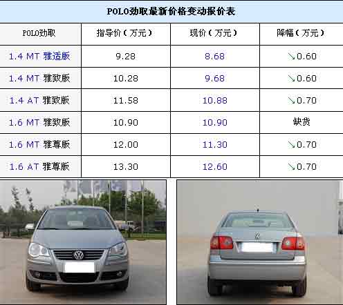 小型车方面,雨燕(报价 参数 图片 论坛),POLO(报价 参数 图片 论坛)系列和乐风价格基本维持上月的水平,价格没有太大的变化。
