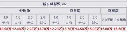 2007年9月22日,全新一代的东风标致307在众多消费者的热切期盼中新悦登场。新东风标致307全系多达九种颜色共十三款车型,价格从10.98万元--16.58万元,全面进军该级别阵营的各细分领域。