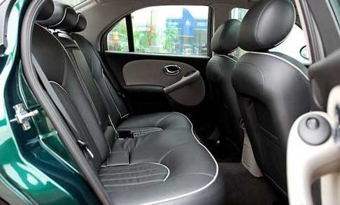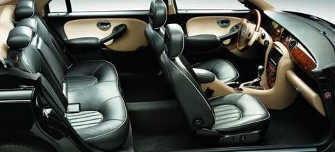 内饰方面,乳白色的仪表盘、横贯中控台的大面积椭圆形仿桃木饰板,在加上复古式时钟的点缀,配合包白边的深灰色真皮座椅散发着浓厚的英式古典风格,颇有些英国豪华轿车捷豹XJ(报价 参数 图片 论坛)的内饰风采,可谓独具品味的内饰设计。