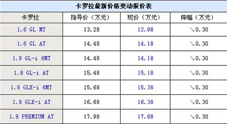 卡罗拉现让利3000元 最低售价12.98万元