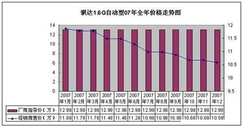 根据行情组的监测,今年一月份骐达1.6G自动型的优惠幅度是1.1万元,售价为11.88万元;本月骐达1.6G自动型的优惠幅度达到了2.4万元,售价仅为10.58万元,在今年一年的时间内骐达1.6G自动型实际降了1.3万元,月均降幅达到1083元。下图为今年骐达1.6G自动型的全年价格走势图:相关文章链接:【比比谁更经济 HRV/骐达保养费用清单】