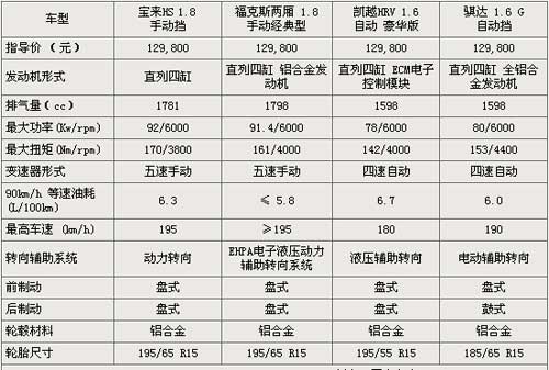 在这次对比中宝来HS和福克斯两厢都提供了1.8L发动机,而别克凯越(报价 参数 图片 论坛)HRV和日产骐达只配备了1.6L发动机,如果单纯的进行数据上的对比这显然是不公平的。因此我们将就这四颗“芯”的不同特点为您做以介绍:福克斯发动机为轻盈的铝合金材质,大大降低了整车的重量,并且为单缸独立点火;宝来HS采用的1.8L发动机技术比较成熟,其可靠性已经在过去的老宝来和高而夫上得到了验证;骐达的1.6L发动机为全铝合金材质,且具备连续可变气门正时功能,再加上轻盈的车身重量,使得其油耗为最低;HRV的发动机没有太大亮点,功率和扭矩表现也都比较普通。在传动系统方面,骐达和HRV提供的自动变速器操作简便。总而言之,HRV和骐达是一款开上去很“简单”的车,宝来HS和福克斯两厢则更能带给您驾御的乐趣。