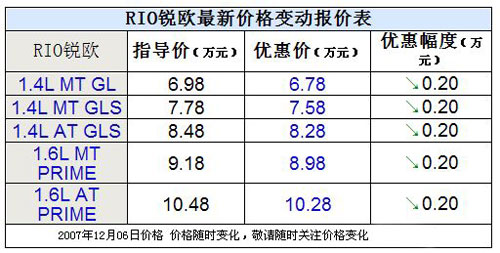 据经销商介绍,现在1.4排量最低价格为6.78万元,1.6最低价格为排量8.98万元。由于之前RIO已经有了大幅度的降价,因此最近价格浮动并不明显。因为该报价为经销商报价,因此具体价格还需要用户到店内面谈。