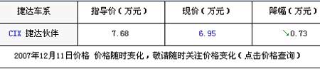 目前捷达全系优惠幅度比较稳定,保持7000元左右的优惠,最低配置的捷达伙伴较前段时间优惠稍有加大,目前优惠7300元,价格降至6.95万元,性价比不错。