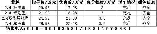 | 雅尊 | 厂商指导价 | 经销商报价 | 优惠幅度 |