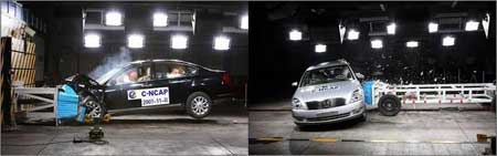 中国汽车技术研究中心在深入研究和分析国外NCAP的基础上,结合我国的汽车标准法规、道路交通实际情况和车型特征,并进行广泛的国内外技术交流和实际试验确定了C-NCAP的试验和评分规则。与我国现有汽车正面和侧面碰撞的强制性国家标准相比,不仅增加了偏置正面碰撞试验,还在两种正面碰撞试验中在第二排座椅增加假人放置,以及更为细致严格的测试项目,技术要求也更全面。C-NCAP对试验假人及传感器的标定、测试设备、试验环境条件、试验车辆状态调整和试验过程控制的规定都要比国家标准更为严谨和苛刻,与国际水平一致。
