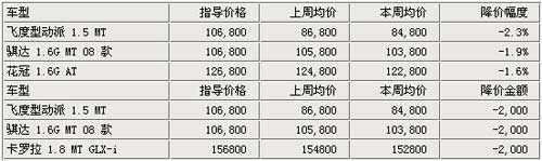 12月上旬上海地区的汽车价格也仍处于下降阶段,但降幅相对较小。在统计的320余款车型中,约有40款车型的价格出现下降,其中降幅相对较大的有飞度、骐达(报价 参数 图片 论坛)、花冠(报价 参数 图片 论坛)等,平均约比上周下降了2000元左右。