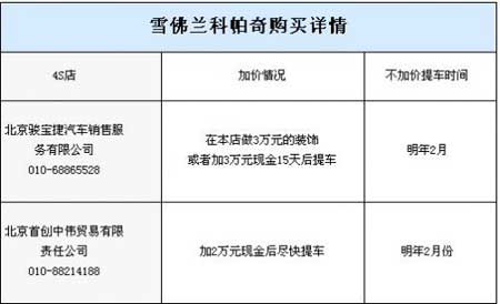 虽然上海通用雪佛兰在-科帕奇上市的时候公布了22.48万和26.58万的统一售价,但通过笔者了解,目前消费者若想购买到现车只能通过“加价”的方式才能提到车。而笔者在北京几家知名的雪佛兰4S店了解到的是,目前科帕奇在各店的加价情况多数约为1万—3万元现金(注意:是现金),少数几家采用做装饰的方式变相加价。
