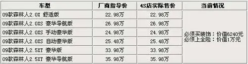 斯巴鲁推09款森林人已上市销售近一个月时间,但是记者从北京地区的斯巴鲁4S店了解到,目前09款森林人车型并不齐全,并且提车必须要在4S店上全险,而且还要在店内做6400元的装饰,其中包括倒车雷达、全车贴膜和尾牌装饰等。