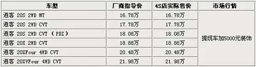 东风日产推出的首款交叉车型——逍客已上市销售一段时间了,但是目前厂家排产数量不多,所以各家4S店的现车较少。不过据销售人员透露:消费者可以在原车价的基础上购买5000元即可在第一时间提到现车,不选择加价的消费者将要等待3个月。