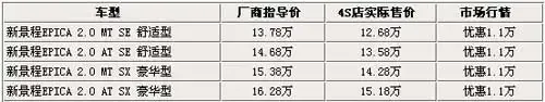 雪佛兰在今年一月推出了“08款景程”,在全系车型增加了多项配置后,售价仍为13.78-16.28万元。近日记者从北京地区雪佛兰4S店了解到:08款景程的售价有了进一步松动。据4S店销售人员表示,目前购买景程车型除了可以得到1.1万元的现金优惠外,还可以得到一些部分的汽车装饰。