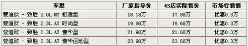 长安福特旗舰产品蒙迪欧(报价 参数 图片 论坛)-致胜已于07年11月正式上市,对于它消费者大都是从电影007《皇家赌厂》中了解到的。它凭借诸多高科技配置与近似于概念车的惊艳外观,给消费者留下了深刻的印象。近日记者以消费者的身份走访了北京地区多家福特4S店,店内销售人员表示目前蒙迪欧-致胜2.3L时尚型和豪华型现车比较丰富,有多款颜色可供消费者选购;但2.0L手动版和2.3L豪华运动型现车数量并不多,购买个别颜色的消费者还需要提前预定。价格方面,目前一些4S店对确定购买该车的消费者可以给出至少4000元的现金优惠,同时也有个别4S店销售人员承诺在4000元优惠的基础上还可以进一步商谈。