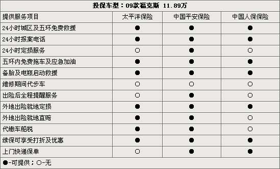 新车保险选择谁?09款福克斯投保费用对比