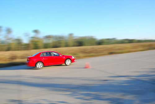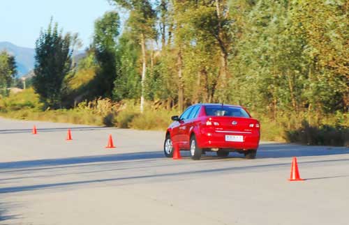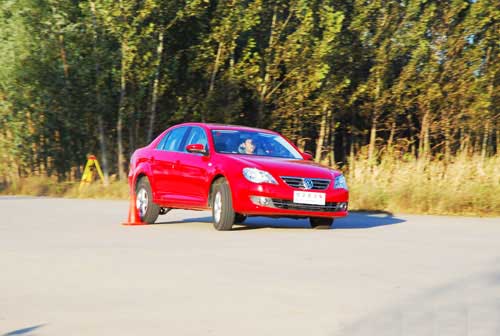 首先上场的是新宝来,起步,车速达到30km/h进入第一个桩桶,猛打方向,这时笔者发现了与老款宝来的明显不同。为了增加行驶舒适性,新宝来较之老款将悬挂调得更软,而在此时偏软的悬挂却成为了侧倾的根源,由于笔者自己就有一辆老款宝来,所以对新宝来这样的侧倾变化感觉非常明显。好在新宝来的转向非常精准,侧倾基本在控制范围之内,即使后轮出现侧滑,只要稍稍抬起油门踏板,车尾马上得到控制,没有一点晃动。虽然新宝来后悬依然采用扭力梁结构,但是这样的表现让我们不得不佩服大众的调校功力。