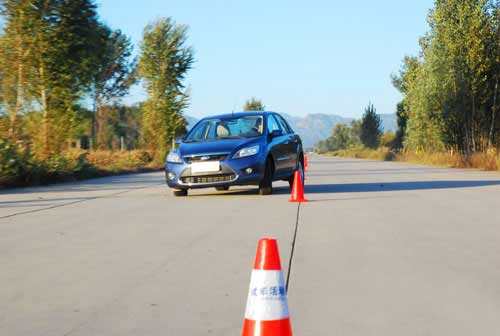 新福克斯上场了,虽然与老款相比变化不大,但是我们测试团队仍然非常期待它的表现。果不其然,将挡位挂入手动模式,起步时车轮出现了挠胎,轮胎冒出了阵阵白烟,可见新福克斯动力相当强劲。同样以30km/h的速度进入第一个桩桶,方向控制相当精准,后面的桩桶一起合成,顺利完成。新福克斯侧倾与新宝来相比稍好一些,但是差距并不大。奇怪的是采用了独立后悬挂的新福克斯在相同车速过弯中依然出现了车尾侧滑,与新宝来基本相同,这可能是轮胎不同带来的差异。