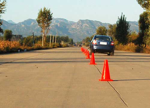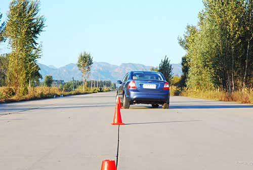 考验一辆车的操控性,绕桩无疑是最好的测试手段,为了将车身姿态放大,也为了增加测试难度,中华网汽车评测团队特意选用了12米桩,而并非是比较通用的18米桩。