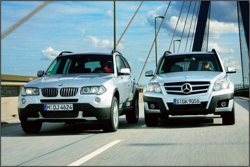 几乎在所有的战场上,奔驰与宝马总是势不两立,总是你方唱罢我登场,谁也绝不会向对方低头。然而,奇怪的是在宝马X3(报价 参数 图片 论坛)登陆后的若干年间,始终看不到奔驰亮剑,甚至当X3都已经进行过中期改款之后,人们依然看不到奔驰的动作,直到X3登陆五年后的今天,奔驰才亮出了GLK继续这场未完成的战斗,那么,GLK肯定要比宝马X3强大吗?