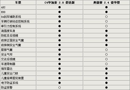 从上表可以看出,这两款车的安全配置都比较齐全。但仔细看下来雪铁龙C4毕加索在电子安全系统方面配备的更为齐全,消费者比较关心的车辆稳定系统也被列为标配,再有C4毕加索比奥德赛豪华型多了膝部气囊和安全气帘,在意外发生时能更好地保护前排乘员的安全,同时C4毕加索还配备了车速限制器,可以有效的防止车速过高所带来的危险。有意思的是C4毕加索还配备了很少见的交谈后视镜。奥德赛在配备倒车雷达的同时又都配备了倒车影像系统,可以有效减少倒车时的刮蹭事故。