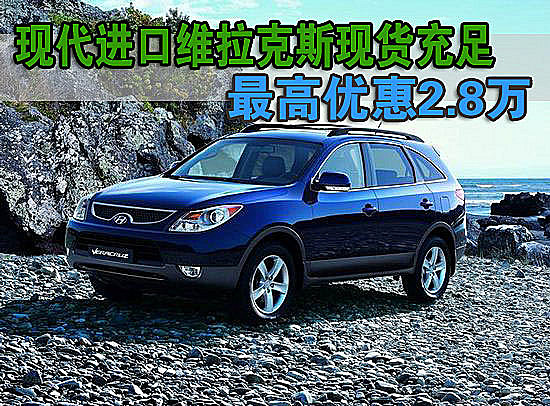 据4S店销售人员介绍,目前现代进口车型维拉克斯3.8豪华导航版可有2.8万元的优惠,低配的豪华型则优惠2.68万元。现售维拉克斯只有高配和低配两款车,均为09款车型,在配置上全车增加了导航和底盘平衡调整等优化配置。目前现车供应比较充足,车的内饰消费者可从灰色、黑色、棕色以及米黄色中随意挑选。