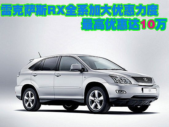 据经销商处销售人员介绍,继11月RX全系出现5.3万元的最高优惠后,近期雷克萨斯又再次加大了优惠措施,最高优惠达到了10万元。在售的雷克萨斯RX系车型共分为RX350与RX400h两款车型,目前雷克萨斯-RX350现金优惠从11月的5.3万元加达到了8万元,优惠后的现售价为70.8万元,而采用油电混合技术发动机的RX400h优惠更是达到了全系有史以来的最高,在经过10万元的现金优惠后售价下降至76.7万元,首次跌破了80万元大关。销售人员还介绍,购买雷克萨斯RX-350可以得到4年10万公里的免费保养,购买雷克萨斯RX-400h的车主可以得到6年15万公里的免费保养。