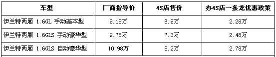 由于内部员工购车可以享受厂商指导价7.5折的优惠,所以售卖此车的经销店对外的售价也是厂商指导价的7.5折,折算成现金后,两厢伊兰特Sports全系车型最高优惠达到了2.78万元,优惠后售价都不超过9万元,最低配的1.6L手动基本型更是仅售6.9万元。销售人员还介绍,店内无两厢伊兰特Sports现车,消费者需交订金1万元,等2周才可提车,目前两厢伊兰特Sports还有限量的400台可以内购,数量比较紧张。