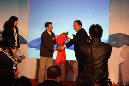 捷亚泰的领导为第一位迈腾DSG车主发钥匙。