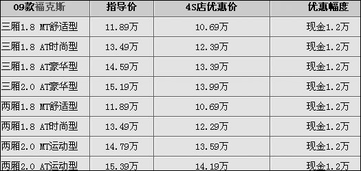 自09款中期改款的福克斯推出后,价格优惠终始坚守在1万元左右。但在购置税的影响下,全系排 量在1.6L以上的福克斯在终端优惠上也开始蠢蠢欲动。因为在多数厂商在享受了1.6L以下车型购置税减半 的政策后,还来不及对销量的激增做生产上的调整,于是市场出现了短暂的真空期。针对目前市场上1.6L 车型车源紧缺的现状,长安福特新福克斯打起了算盘。原本优惠在万元左右的福克斯,目前在经销商处上 出现优惠升级至1.2万元的幅度。这使得福克斯的最低售价仅为10.69万,意欲争夺1.6L车型的市场份额。