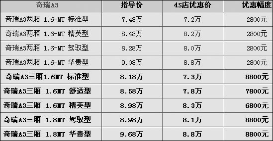两厢鼎力助阵 奇瑞A3三厢最低售7.3万