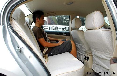 比亚迪F6轴距比宾悦及尊驰短50mm,比东方之子长40mm,表现中规中矩。前后排座椅都可以轻松满足身高一米八乘客的腿部需求,只是头部空间稍显压抑。值得称赞的是车宽相当理想,1822mm的宽度是自主品牌中级车中最大的,后排可舒服容纳三名成人。