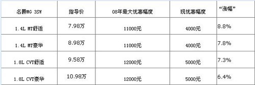 回涨车型四:名爵MG3(报价 参数 图片 论坛) SW