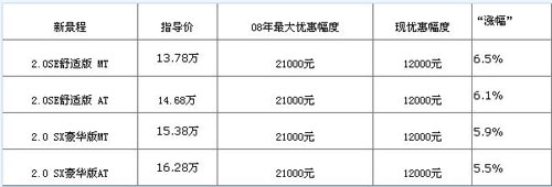 小编点评:2月18日,广汽丰田正式发布了小改款后的新凯美瑞。与09款凯美瑞相比,新凯美瑞的发动机、变速箱、底盘均没有大的改动,主要的变化集中在外观上。由于目前厂商和4S店均把新凯美瑞作为主打产品,09款凯美瑞的库存并不算多,因此优惠较去年年底大幅减少合情合理。