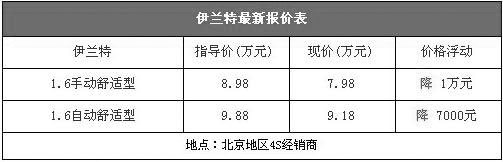 伊兰特做为一款老车型,在上市之后凭借其出色的性能和时尚的外型受到消费者的欢迎。降价后的伊兰特性价比突出,因其保有量大而使得维修保养费用低廉,非常适合选做家用或者出租车行业。我们认为,目前北京地区伊兰特的性价比突出,并且价格稳定,短时间内价格再次下降的空间非常小,因此近期准备购买9万元左右家用车的朋友不妨重点考虑伊兰特。