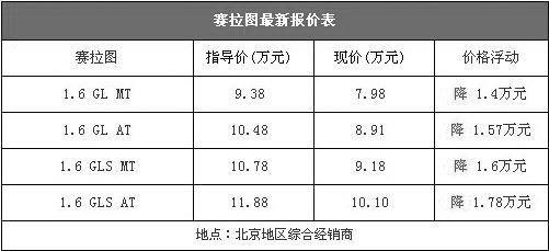 目前赛拉图最高可优惠1.8万元,其中最低配车型的售价仍然保持在7.98万元的价位。目前赛拉图全系车型的售价和去年年底完全相同,价格非常稳定。以下是08款赛拉图详细报价表: