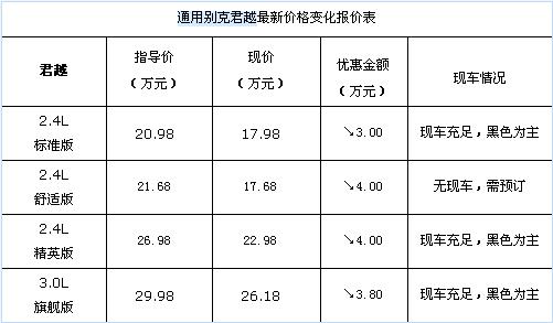 购车提示:购买君越、马6老款车均需提前预订,领驭、迈腾新款车已上市,部分车型新车也有一定幅度优惠。