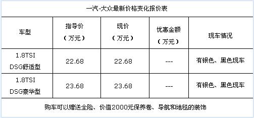 大众迈腾:赠送全险、价值2000元保养卷、导航和地毯装饰