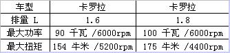升功率是衡量发动机效率的一个重要因素, 1.6L 卡罗拉升功率为56.25千瓦,而 1.8L 卡罗拉升功率为55.56千瓦,表面看上去 1.6L 车型更风光(报价 参数 图片 论坛)。但实际上,我们知道,满载加上空调,绝不会是1.6车型比1.8更轻松。