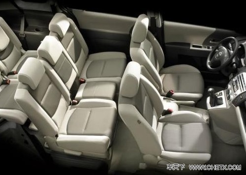 在内饰空间方面马自达5继承了日系车一贯的优良传统,精巧的设计非常具有人性化。它的第三排座椅可以完全放平,从而得到一个857L的常用后备箱空间;在第二排座椅下还暗藏了大储物阁,放些随身物品很安全。腿部空间上马自达5表现良好,一家人出游都能找到舒适的坐姿,只是马自达5的最佳状态是坐6个人,如果必须坐满7人那么中排的乘客就要忍耐一下了。