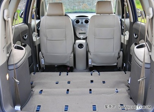 内部空间来说,完全可以满足一般家庭使用。其中第二排座椅是三个独立的座椅,可以前后滑动,并且每个座椅都可以单独折叠放平,极大的提高了车内空间的灵活性。不过第三排的两个座椅都很平,腿部空间和头部空间也很紧张,这样的设计只适合小孩子去坐。