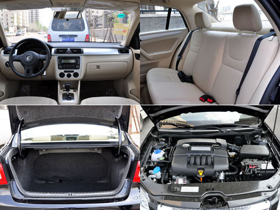 桑塔纳的内饰基本保持了上世纪80年代问世时的风格,现在看来甚至有些简陋,例如A柱两侧的三角窗、功能键的形式都显得过时,但在配置上,上海大众却成功的让普桑保持了新鲜。例如普桑锦畅型的配置有E-GAS电子油门、ABS+EBD、铝合金轮毂、电动调节外后视镜、环保空调、遥控门锁、电动车窗、带有MP3播放功能的音响系统以及智能电子密码防盗系统等装备,便利性方面丝毫不逊色于任何一个同价位对手。
