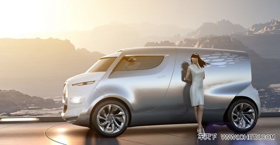 Frendzy概念车是一款MPV车型,设计理念较为前卫,车顶部分采用了大面积的帆布材质遮盖。此外,这款车在车门设计方面也非常有创意,车身一侧采用了对开门设计方式,另外一侧为了便于乘客上下车,采用的是常规的滑门式设计。