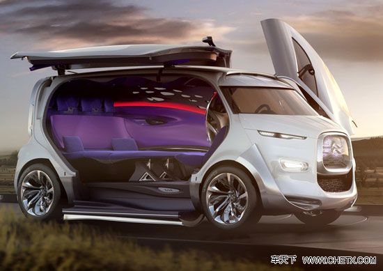 这款车揭示了雪铁龙对于一体式MPV的一个理解,采用了非对称的车门开启设计,创意的前脸造型很像雪铁龙的其他概念车。来到内部,充满科技感的内饰揭示了未来的设计理念,乘客舱有着丰富的配置,但并没有车窗,我们猜测是通过摄像机以及LCD屏幕进行观察。