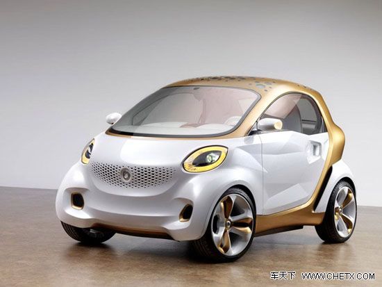 外观方面,官图中的smart Forvision并没有效果图上的看起凶狠,前车大灯特有的黄色灯圈充满了梦幻色彩,前翼子板和车身两侧的线条丰富且张弛有度,充满力量感。此外,这款概念车使用的高强度塑料轮毂,与合金轮毂相比,每台轮毂重量减轻了3kg。