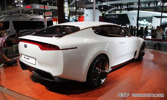 起亚GT概念车将是起亚品牌之下的首款后驱车型。该车搭载了一套V6涡轮增压发动机+8速自动变速箱的动力总成系统。