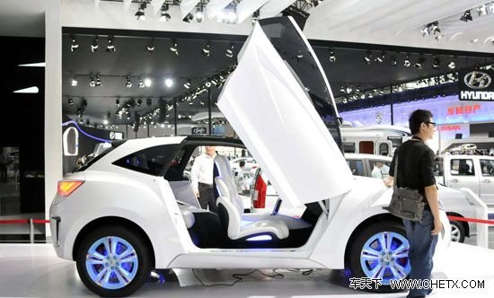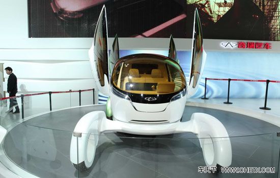 除了单厢灵巧的车身结构,奇瑞@ant概念车最为扎眼的就是前轮的设计,酷似昆虫前爪的车轮采用空心的设计,而且蓝色灯光的环绕也给这款车平添许多科技感。